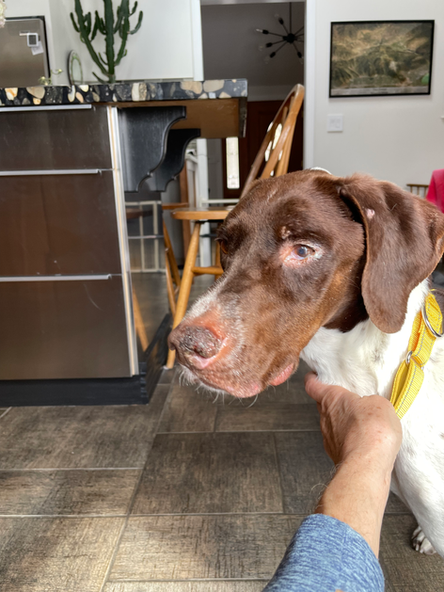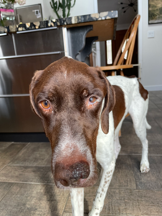 Baron is a sweet approximate 5yr old male GSP looking for his forever home. He was found running on the desert and his body shows it, he was 35lbs when he came into rescue, he is now 46lbs and at a healthy weight!